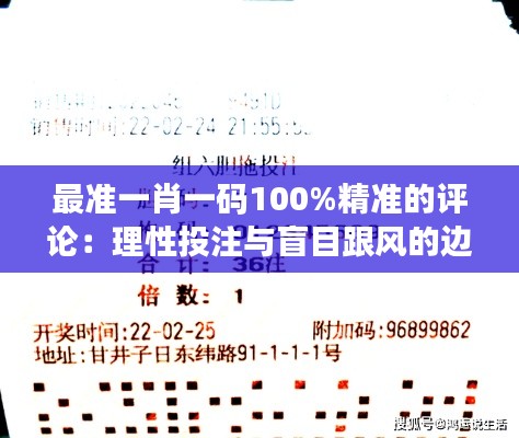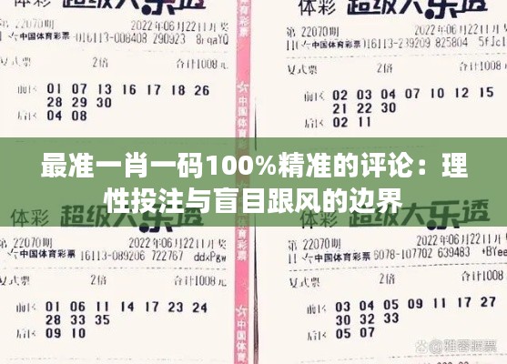 转载请注明来自成都华通顺物流有限公司,本文标题:《最准一肖一码100%精准的评论:理性投注与盲目跟风的边界》