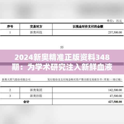 随着全球科技的迅速发展和经济的不断进步,学术研究在推动创新和社会进步中扮演了越来越重要的角色。因此,如何使学术研究更加精准、高效成为各界重点关注的议题。在这种背景下,澳门政策研究室特别推出了“2024新奥精准正版资料348期”,旨在为学术研究注入新鲜血液,提升研究质量和学术深度。