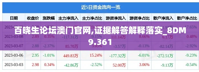 百晓生论坛澳门官网上的政策文件往往冠以特定的代码,以此便于管理和检索。"证据解答解释落实_8DM9.361"可能是这样一个代码,它代表了论坛上的一个重要政策文件或议题,涵盖了政策证据、解答、解释和落实的全过程。