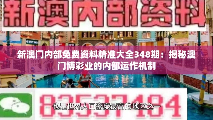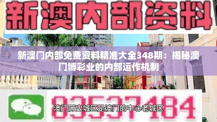 澳门,作为世界著名的娱乐和博彩旅游目的地,其博彩业的繁荣对当地经济有着举足轻重的影响。长期以来,外界对于澳门博彩企业内部的运作机制充满好奇,新澳门内部免费资料精准大全348期将揭秘这一神秘面纱。本次披露,旨在为政策制定者、投资者以及普通大众提供一个全面、精准的澳门博彩业内部运作机制的深刻洞见。