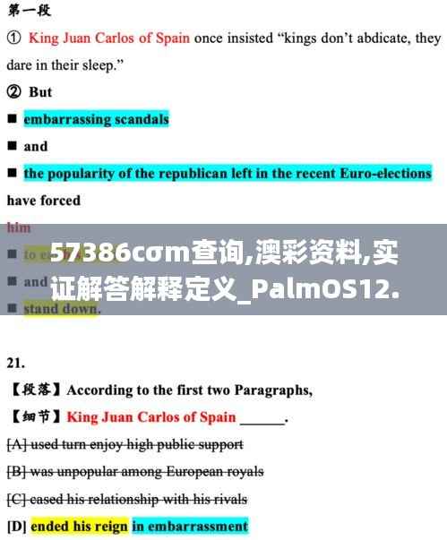 随着澳门经济的快速发展,对于澳门政策的了解和掌握变得尤为重要。本文旨在通过对57386cσm查询、澳彩资料以及实证解答解释定义和PalmOS12.719等关键词的探讨,为澳门居民和相关利益方提供一个全面、权威的澳门政策文件解读。