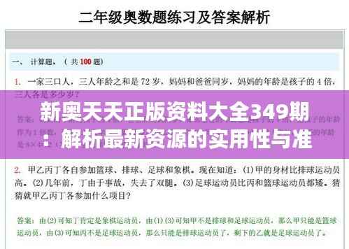新奥天天正版资料大全349期:最新资源的实用性与准确性