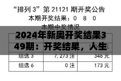 以下是关于“2024年新奥开奖结果349期:开奖结果,人生转折点”的详尽报道。这一期的开奖结果,在许多人的人生航线上起到了举足轻重的转折点。