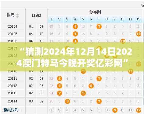 人们为何对幸运数字如此痴迷?仿佛每一场赛事的开奖结果都关乎着生活上的重大转机。让我们来深入探究今晚"猜测2024年12月14日2024澳门特马今晚开奖亿彩网"——的数字背后那迷人的秘密。数字并非偶然,它背后蕴含着统计学、概率论和精算学的逻辑。