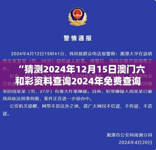 免费查询是指用户无需支付任何费用即可获取“猜测2024年12月15日澳门六和彩资料查询2024年”相关的六和彩信息。这一政策具有深远的社会意义和市场价值。
