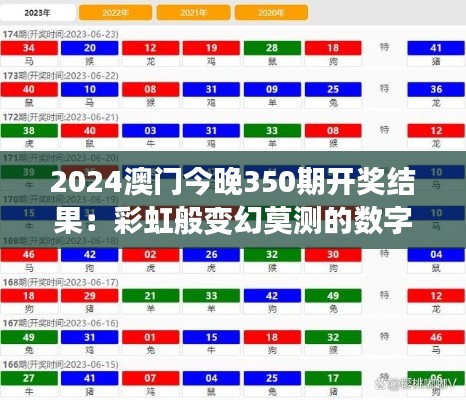 随着2024澳门今晚350期开奖结果的揭晓,无数彩民的目光再次聚焦在这个色彩斑斓的数字世界。彩虹般变幻莫测的数字,带来的不仅是财富的机会,更是心跳与刺激的体验。在这篇文章中,我们将深入了解2024澳门今晚350期开奖结果的与众不同之处,以及为何它能吸引如此多的彩民关注。