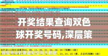 "开奖结果查询双色球开奖号码,深层策略设计数据_UHD款6.334"这是一个引人入胜的独特话题。在我们的生活中,很多人都会参与到彩票游戏中来,而双色球无疑是其中最受欢迎的彩票之一。但是对于很多人来说,查询开奖结果和了解开奖号码往往是一个比较复杂和繁琐的过程。而《开奖结果查询双色球开奖号码,深层策略设计数据_UHD款6.334》就是为了帮助大家更好地了解双色球的开奖结果,以及深层策略设计数据的相关信息。这篇文章将深入浅出地向大家解释“开奖结果查询双色球开奖号码,深层策略设计数据_UHD款6.334”背后的原理和机制,希望能让大家对这个话题有更深入的了解。