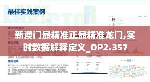 “实时数据解释定义_OP2.357”是一套详细的规范,用以解释和定义与“新澳门最精准正最精准龙门”相关的数据含义和处理方式。这一定义涉及数据采集、存储、处理、发布等多个环节,确保每一环节都能够遵循精确、高效的标准。它包含以下几个关键要素:
