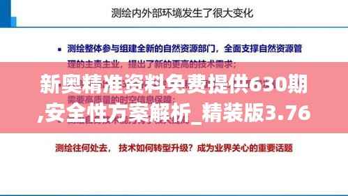 新奥精准资料免费提供630期,安全性方案解析_精装版3.765,是一套综合的解决方案,针对不同行业的数据安全需求提供定制化服务。其中,“精准”二字深刻体现了该资料的核心竞争力,即通过精确的技术分析和个性化服务,向用户提供最匹配的资料和解决方案。这些资料覆盖面广泛,涉及金融、医疗、教育、政府等多个领域,每个方案均经过专家深入研究,确保了其高度的实用性和可操作性。