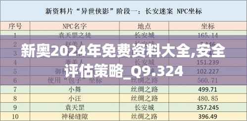新奥2024年免费资料大全,安全评估策略_Q9.324文件中,涵盖了从政策解读到技术指导的一系列免费资源。这些资料内容丰富多样,为公众、企业和政府机构提供了便捷的获取途径。资料包括但不限于: