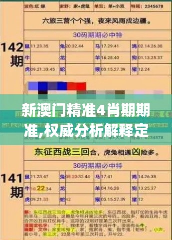 “新澳门精准4肖期期准,权威分析解释定义_3K5.589”不仅是政策的名称,也是澳门政府在政策制定和执行过程中所坚持的原则和方法。通过精准的定义、权威的分析、期期准的执行标准,澳门的政策旨在为居民提供更稳定、可靠和前瞻的服务,以确保澳门长期的繁荣和稳定。