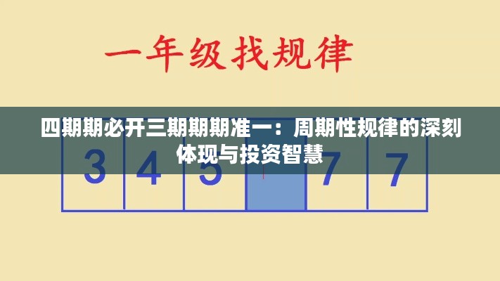 在澳门这样的特别行政区,政策文件中经常提到四期期必开三期期期准一,这不仅仅是一个简单的数字游戏,更是一种深入骨髓的投资智慧和周期性规律的深刻体现。本文旨在探讨这句话如何在投资领域发挥作用,以及投资理财心理中周期性规律的重要性。