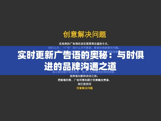 标题:实时更新广告语的奥秘:与时俱进的品牌沟通之道