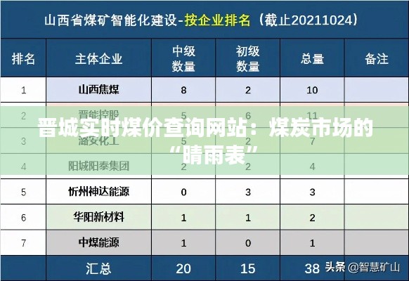 标题:晋城实时煤价查询网站:煤炭市场的“晴雨表”