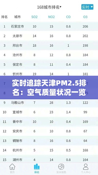 实时追踪天津PM2.5排名,有助于我们了解这座城市的空气质量状况,为市民提供有益的参考。让我们共同关注空气质量,为改善环境、保护健康贡献力量。