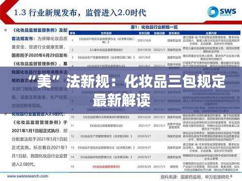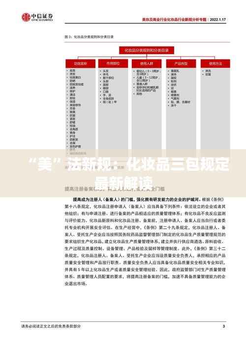 在这个“颜值即正义”的时代,化妆品早已成为人们日常生活中不可或缺的一部分。然而,美丽的外表下,消费者权益的保护同样不容忽视。近日,我国化妆品行业迎来了一项重磅新规——化妆品三包规定的最新修订。这一新规不仅为消费者提供了更为坚实的法律保障,也为化妆品市场的健康发展注入了新的活力。